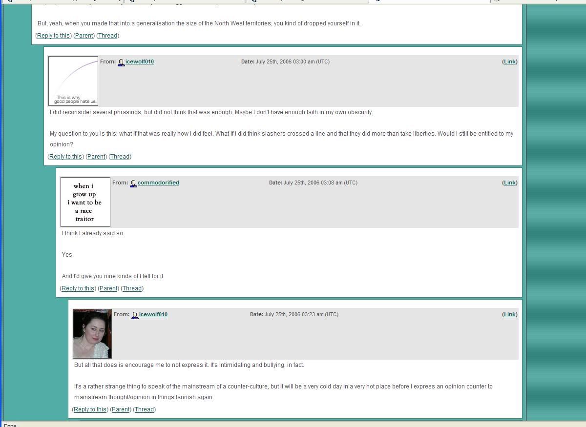I Don't Like slash, So There wank a-happening, apparently focused around the Stargate Fandom. The hot-button part of the post is the "I'm not anti-gay. I'm pro-artistic integrity" excuse.