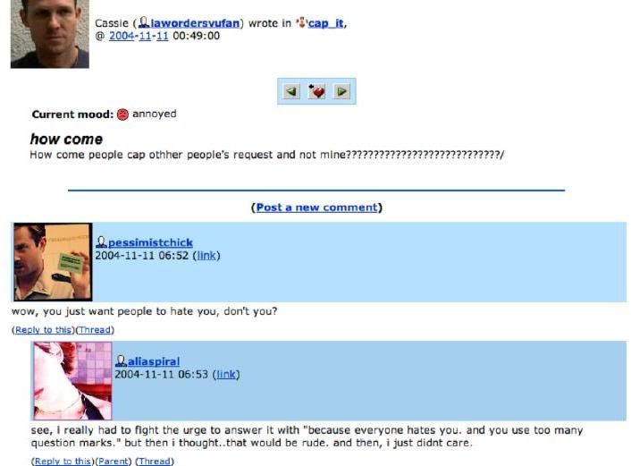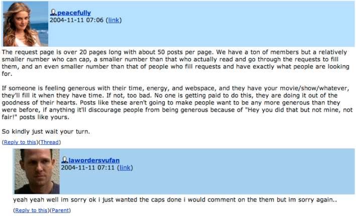cap_it, which is a place to post links to screencaps one has made from whatever movie/tv show/music video strikes their fancy. There's an unwieldy request thread, which is always causing problems.