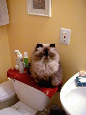 The other two are much more normal, yet they've got "terrorist names" they just don't go by because we had to match the Osamster (blame the breeders for that, they nicknamed him "Osama bin Kitty" as a kitten, and liked it much better than his registered name :). Luna the Siamese, aka "Al-Lunahiri"; and Amanda the Ragdoll, aka "Abu-Amandy Al-Zarkitty". Friends wanted in with their cats, so Al Kitty has field agents in various places, one of which is owned by someone who actually works in counterterrorism at Homeland Security.