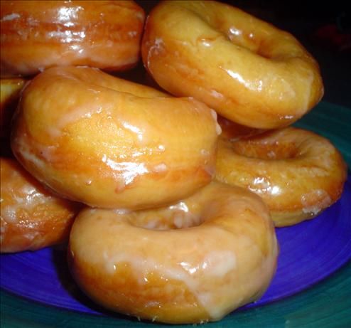 ![]() Food.com: Krispy Kreme Doughnuts 2 cups scalded milk 1/2 cup butter 2/3 cup sugar, divided 1 teaspoon salt 2 tablespoons yeast 4 eggs (beaten) 1/4 teaspoon nutmeg 7 cups sifted flour Glaze 3 cups powdered sugar 1/2 teaspoon salt 1/2 teaspoon vanilla 1/2 cup cold water Change Measurements: US | Metric Directions:Prep Time: 3 hrs Total Time: 3 1/2 hrs 1 Mix together ingredients for glaze. 2 Melt butter in hot milk, add 1 tsp sugar and salt. Allow to cool. 3 Beat in yeast, nutmeg, eggs, remaining sugar, and 3 cups flour. 4 Add rest of flour (dough will be sticky). 5 Knead for 5 minutes then allow to rise for 1-1 1/2 hours. 6 Roll out dough, cut into shapes. 7 Do not re-roll dough, then allow to rise for 30-45 minutes. 8 Heat oil to 365° and fry 1 - 2 minutes on each side or until brown. Toss in the doughnut holes first, let those cook, and then proceed to cooking the donuts. 9 Let them cool on a paper towel - helps get the glaze to stick. 10 Dip in warm glaze. Post a comment in response: |
